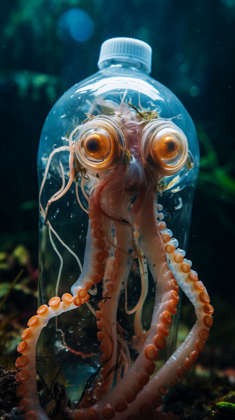 I set myself the challenge of creating TikTok content using AI tools. The idea was to start a conspiracy theory (ever been on "conspiracy-tok"?) showing how sea life have evolved to cope with the plastic pollution surrounding them, creating a dystopian future around this crisis.
